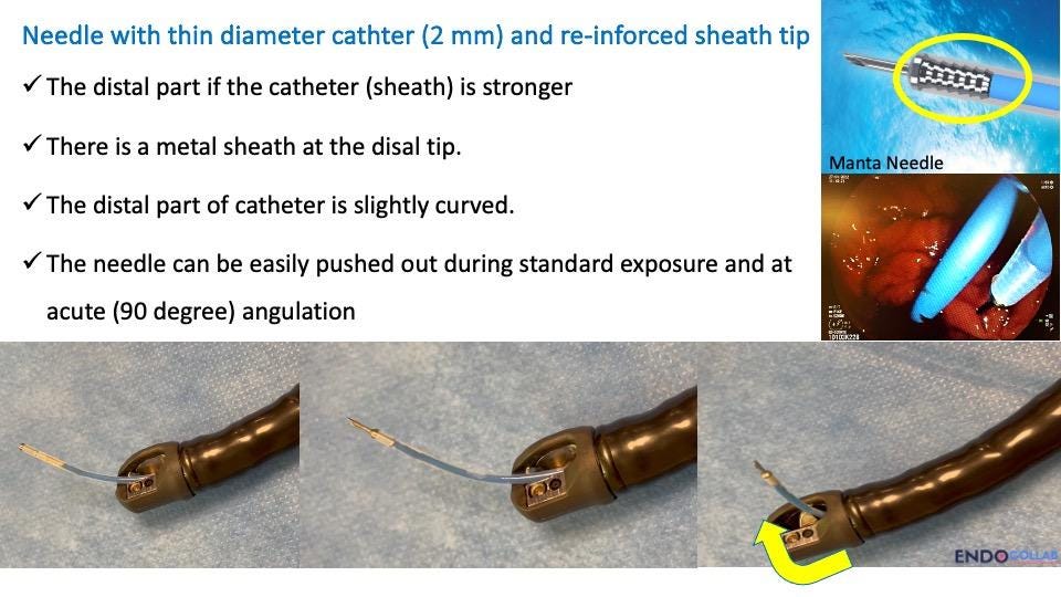 The Manta needle is an invaluable tool for managing post-sphincterotomy bleeding (Figure 3). Its key features include: