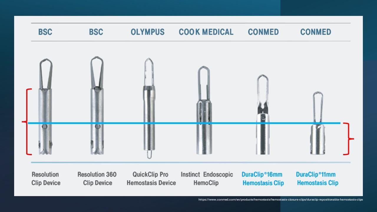 Clip size: For papillary bleeding, 11mm clips are usually sufficient, as the goal is to close individual vessels rather than large defects.