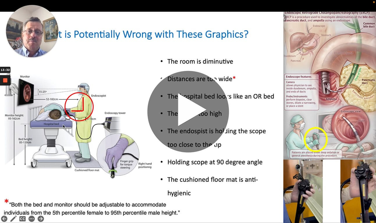 I’ll also show you how ergonomics is misunderstood and misrepresented, leading to lots of confusion, and often, engineers and architects rely on this information provided through the internet to (wrongly) design our endoscopy suite.