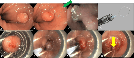 The Duette device (Figure 1D) is essentially an endoscopic banding device for varices. The objective of suctioning and banding GI mucosal lesions is to a) reshape a flat or semi-sessile lesion into a “sessile” form, b) have the band at the base and assure a better endoscopic resection (R0).