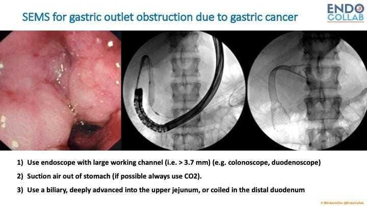 Good to know! If you are using a gastroscope with a 2.8 mm working channel, it’s impossible to pass a delivery device, stent or pushing catheter larger than 8 Fr. Most delivery systems for self-expanding metal stents (SEMS) used to palliate gastric outlet, small bowel and colonic obstruction are 10 Fr. Therefore, you can deploy these SEMS only using scopes with a large enough working channel, for example colonoscope or duodenoscope (see figure below).